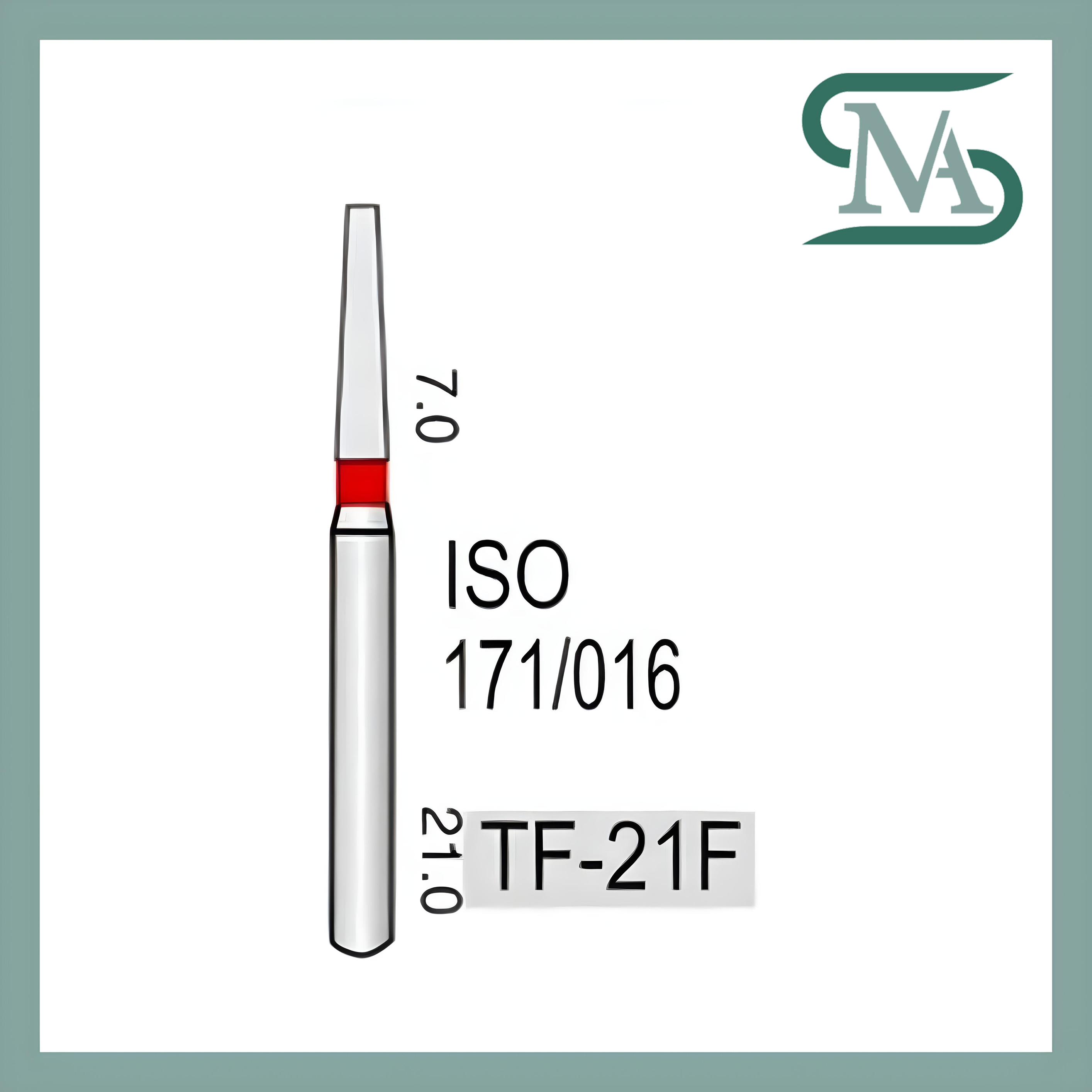 - دقت بالا در برشها: طراحی مخروطی ته صاف این فرز باعث ایجاد برشهای دقیق و تمیز میشود، که برای درمانهای ترمیمی و زیبایی دندانها ضروری است.
